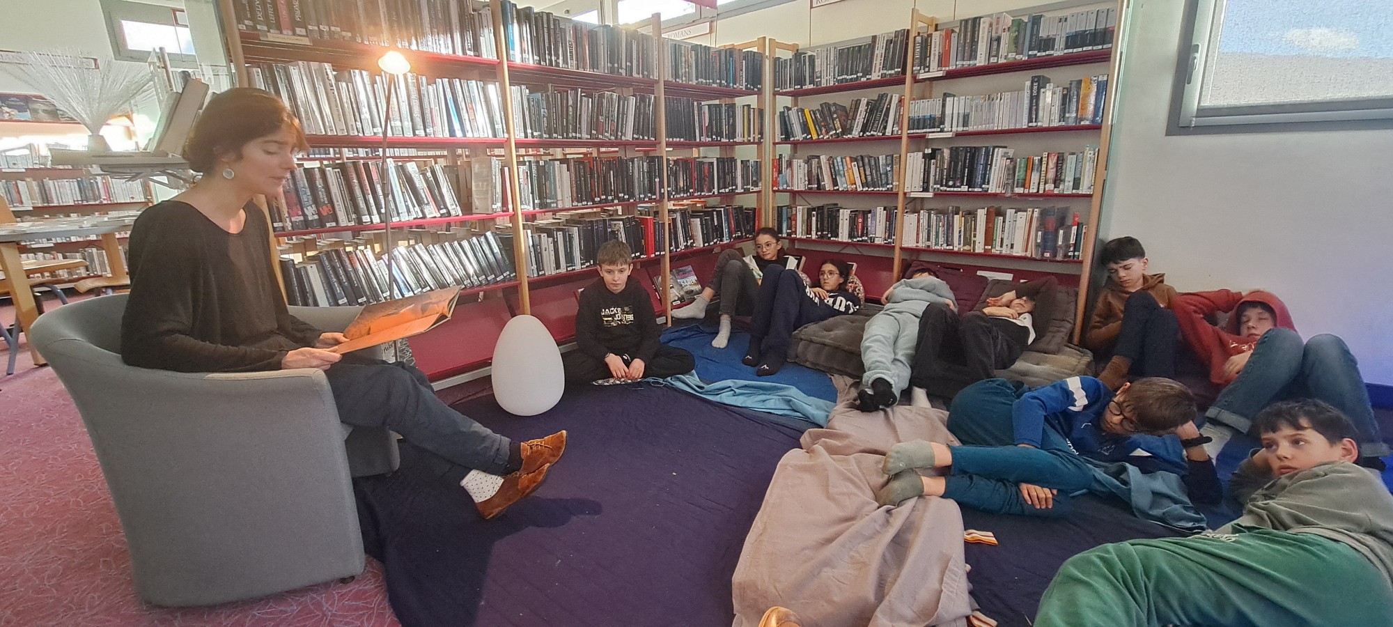 Dans ce cadre, les élèves de la 6° à la 4° se sont rendus à la Médiathèque de Vic sur Cère où des lectures leur ont été offertes dans une ambiance nocturne...