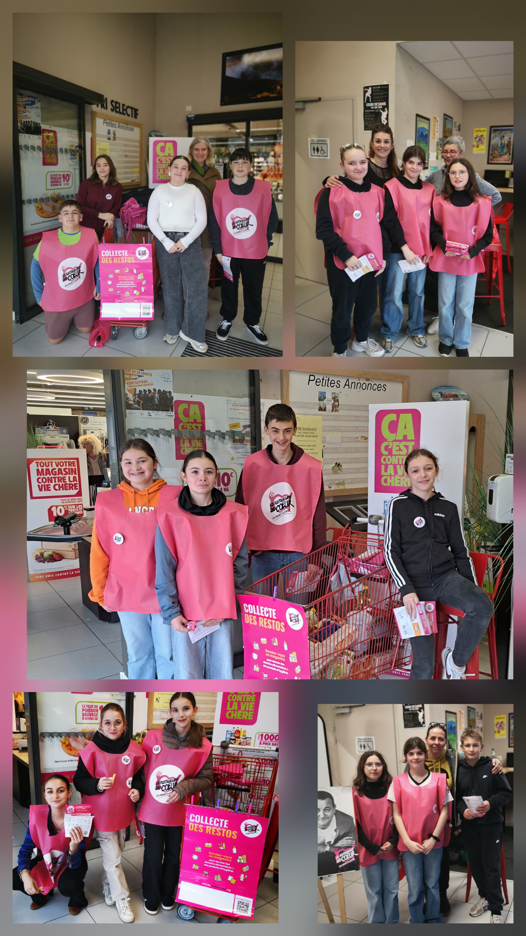 Collecte nationale des Restos du Cœur : Vendredi 6 mars et samedi 7 mars, 25 élèves de la 6ème à la 3ème ont participé à la Collecte Nationale des Restos du Cœur à l'Intermarché de Vic sur Cère.
